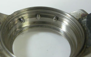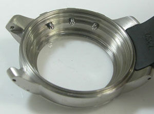 このパッキンとスクリューバックリングで防水機能をなしております。ケースの内側もチェックして。