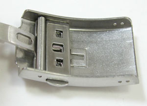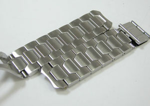 ステンレス無垢バンドに三つ折れプッシュバックル。