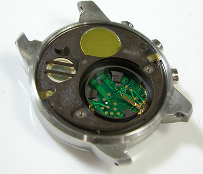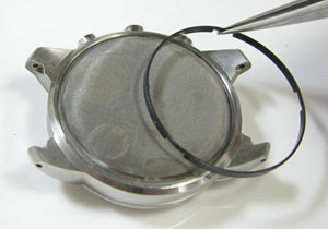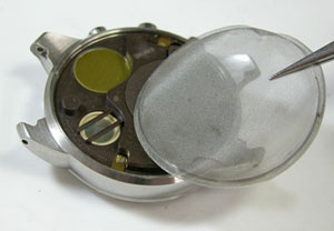 裏蓋を開けるとネットがムーブメントを覆っています。ネット留めのリングを外して。