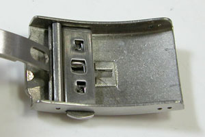 ラグ部はCリングピンですがCリングパイプはベルトの中。裏蓋の裏側もチェックして。