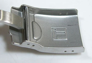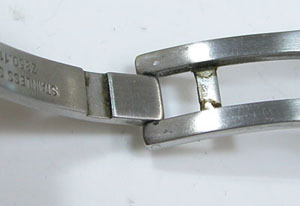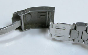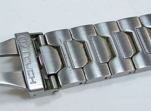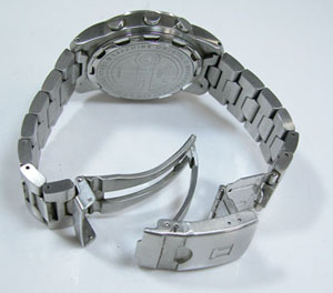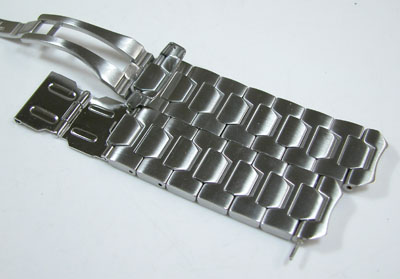 ステンレス無垢バンドに三つ折れダブルロック。