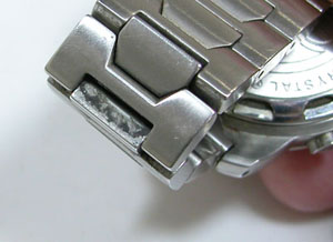 コマの隙間やバックルなど洗浄でないと落ちない汚れが。ただこの時計のベルトハズしかかなり厄介。