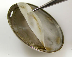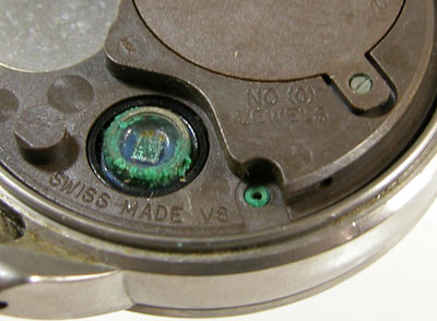 裏蓋の汚れもチェックします。写真のように裏蓋といっても”カバー”ですから穴が空いているのでどうしても汚れます。