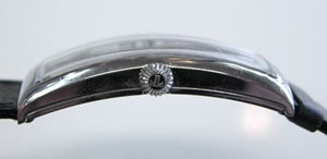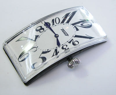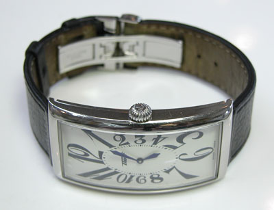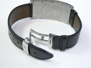 ケースが長いので腕にフィットしやすいようにカーブしています(カーベックス)。バックルは両開きバックル。