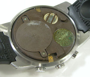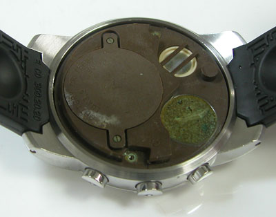 裏蓋を開けたところですが、この腕時計の場合。この面が外気や湿気に振れる事になります。