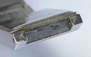 綺麗になったケースにムーブメントを戻して電池格納部をチェックします。