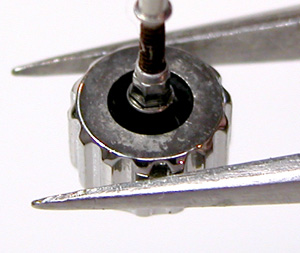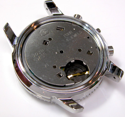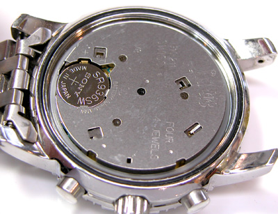 綺麗になったケースにムーブメントをもどして電池格納部をチェックします。