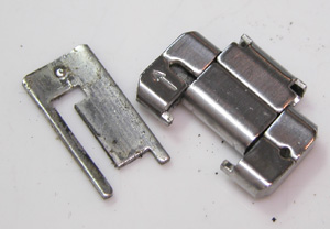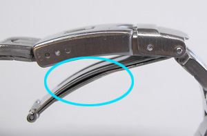 ベルトを取り付けますがバックルが浮くのをダブルロックで押さえつけた感じですが、三つ折れバネのカーブがイビツ。