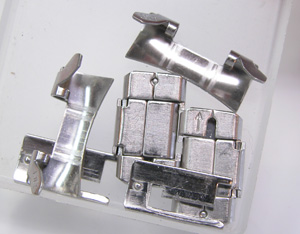 ステンレス板巻きバンドに三つ折れダブルロック。