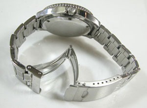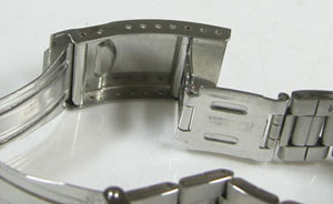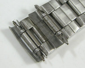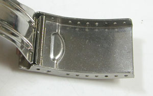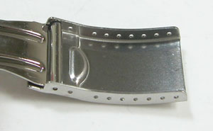 ステンレス板巻きバンドに三つ折れバックル。
