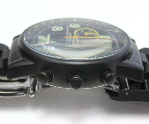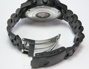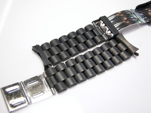 ステンレス無垢バンドに三つ折れダブルロック。