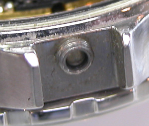 スペーサーを戻しますがスペーサーと言えどもプッシュボタンの役目も果たしています。高額な腕時計ではありえない構造でもありますが。