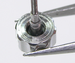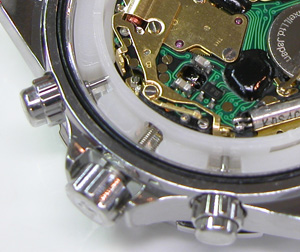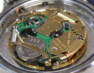 綺麗になったケースにムーブメントを戻して電池格納部をチェックします。