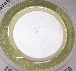 裏蓋の裏側チェックですが中央が濡れた様になっているでは・・?どうやら接着剤が固まっているだけの様ですね。