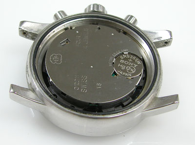 ゴミは目盛リングに付いており除去してムーブメントを戻して電池格納部をチェックします。