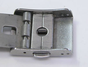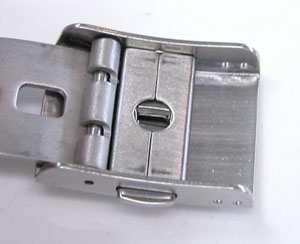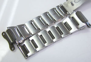 ステンレス無垢バンドに三つ折れプッシュバックル。