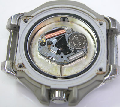 綺麗になったケースにムーブメントを戻して電池格納部をチェックします。