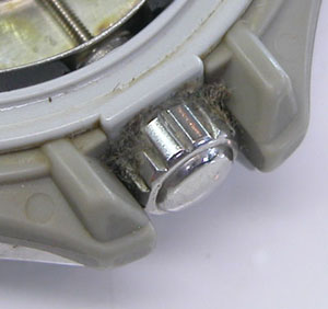 左の写真の様にセットしてから裏蓋ネジを締めますから意外に難しいのです