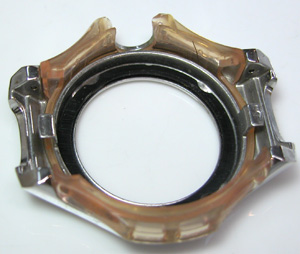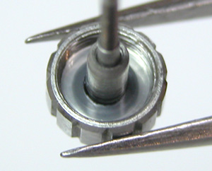 裏蓋側にパッキンが付いて出てきました。ゴムのスペーサーが見えますから摘み出して。