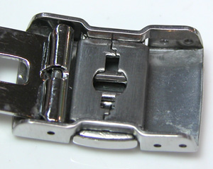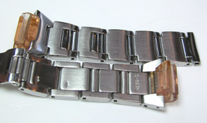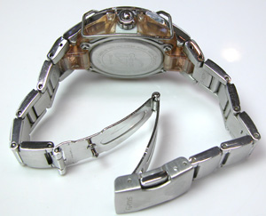 ベルトの一部が裏蓋を覆っていますから外さないと裏蓋を開けられません。