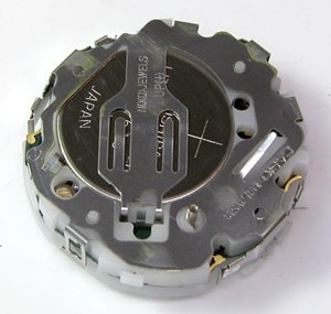 綺麗になったケースにムーブメントを戻して電池格納部をチェックします。時間合わせをして。