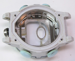裏蓋を開けるとゴムのスペーサーが見えます。