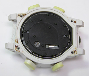 裏蓋を開けると黒いゴムのスペーサーが見えますから摘み出します。