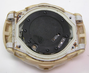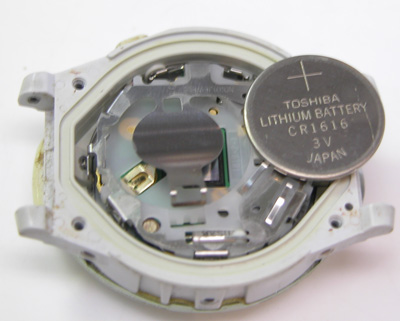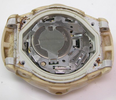 綺麗になったケースにムーブメントを戻して電池格納部をチェックします。