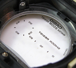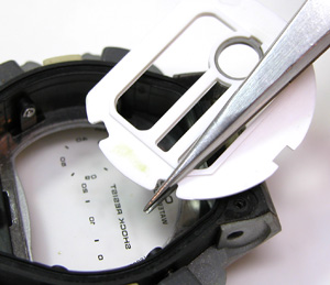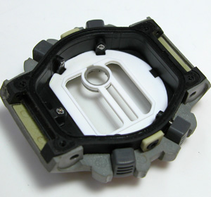 G-SHOCK DW-004 1625電池交換メンテナンスです。裏蓋はカバーで覆われていますから外します。