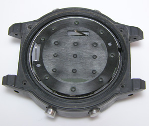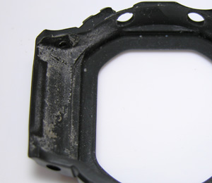 もちろんカバーの裏側も。これも洗浄します。ケース側ですがG-SHOCKはケースの洗浄が出来ない物が多いですから手作業で拭き取りとブラッシングです。