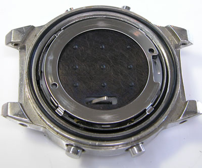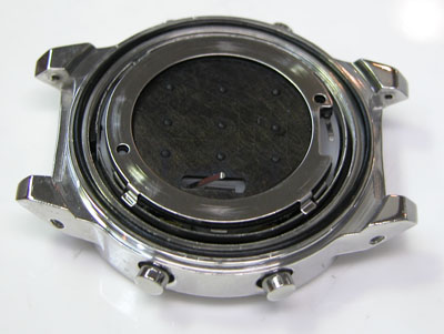 裏蓋を開けるとスペーサーがムーブメントを覆っています。