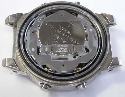 綺麗になったケースにムーブメントを戻して電池格納部をチェックします。