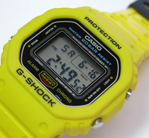 G-SHOCK DW-5600-901電池交換メンテナンスです。電池交換とガラス内側のくもり取り、そして内部のホコリ取りの依頼もです。黄色と黒のコントラストが綺麗ですね。