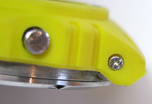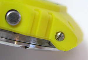 裏蓋はスクリューバック。ウレタンで覆われていますがステンレスケースの腕時計。