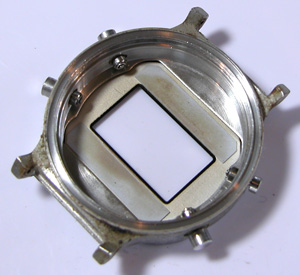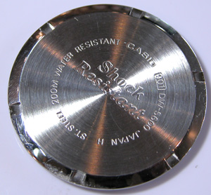 表のカバーを外せばステンレスケースの腕時計であることが良く分かります。羊の皮をかぶったオオカミ、って所ですか。これが外したカバーですが。