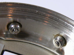 反対側から見ても。でもネジの頭が錆びているのが分かりますね。ラグ部のバネ棒は先端が錆びています。
