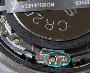 これが電池、リチュウム”CR2016"ですね。電池格納部もチェック。