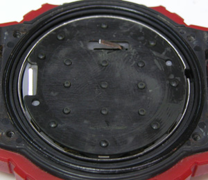 パッキンは裏蓋に付いて出てきました。見事パッキンが効いているのが分かりますね。