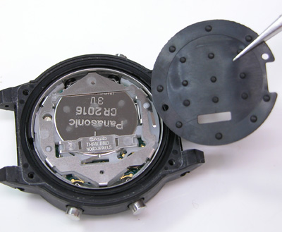 裏蓋を開けるとゴムのスペーサーが見えますから。