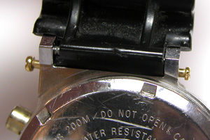 ウレタンバンドはバネ棒で留まっています。カバーを留める金色のネジが良い雰囲気でもあります。