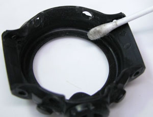 ベゼルカバーを戻しますがウレタンの劣化がありますから洗浄したらボロボロになりそうで、綿棒で拭き取る程度に。