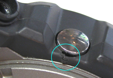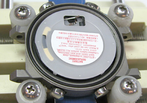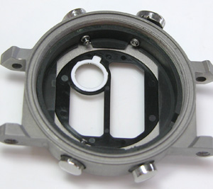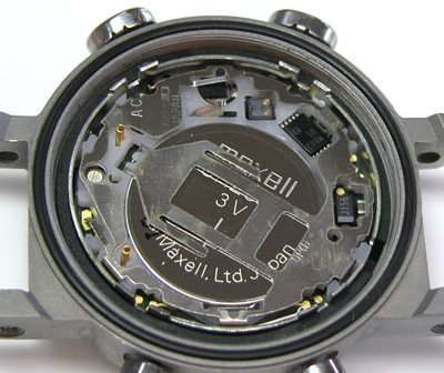 裏蓋もチタンでケースもチタンは滑りにくいので開けるのも堅い。裏蓋を開けるとプラスチックのプレートが見えますが、これはスペーサーではありません。この位置を間違って入れると正常動作しませんから注意が必要です。