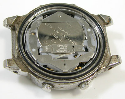 綺麗になったケースにムーブメントを戻して電池格納部をチェックします。