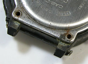 裏蓋ネジを外せばサビが出て来ます。