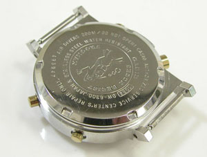 裏蓋はスクリューバックで右が裏蓋記載。