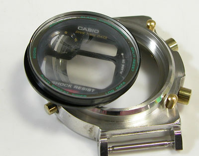 先ずはプラスチックの黒い文字盤を取付ます。そしてガラスの取付。曇りは拭き取ってスッキリ。「はずして防水機能無視」こういう事を書くせいか良く「電池交換メンテナンスの後は防水機能が無くなる」と思っている方が多い様で。そういう認識でも構わないのですが、でも入っていた部品は戻す訳ですからね。機能が無くなりはしないと思いますよ。