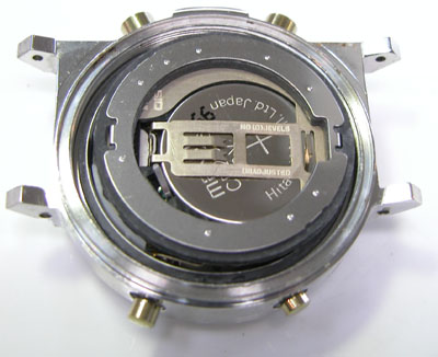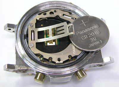 綺麗になったケースにムーブメントを戻して電池格納部をチェックします。