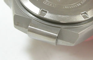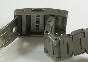 チタン無垢バンドに三つ折れプッシュバックル。微調整部分の位置をチェックします。