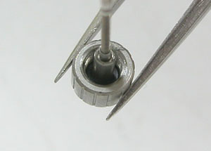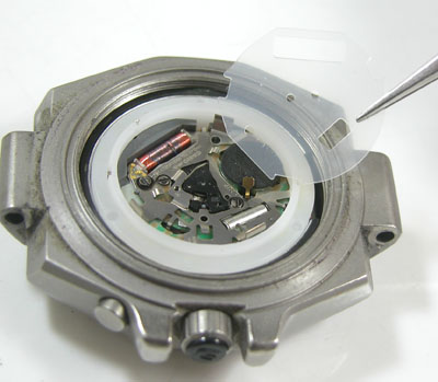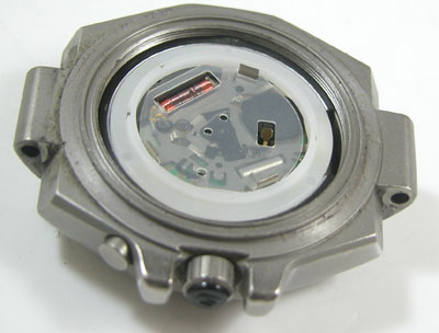 外したパーツを戻していき電池を入れて動作確認ですが不動。クォーツの発信がないので動きません。