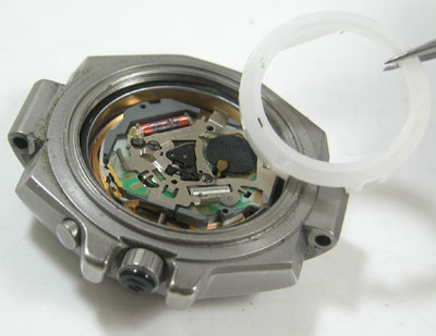 綺麗になったケースにムーブメントを戻して電池格納部をチェックします。